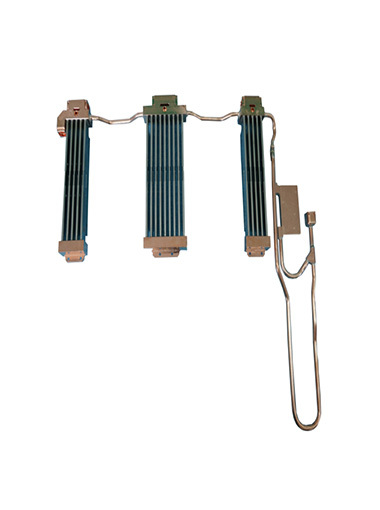 一套典型的水冷散热系统必须具有以下部件:水冷块、循环液、水泵、管道和水箱或换热器。水冷块是一个内部留有水道的金属块,由铜或铝制成,与CPU接触并将吸收CPU的热量。循环液由水泵的作用在循环的管路中流动,如果液体是水,就是我们俗称的水冷系统。吸收了CPU热量的液体就会从CPU上的水冷块中流走,而新的低温的循环液将继续吸收CPU的热量。水管连接水泵、水冷块和水箱,其作用是让循环液在一个密闭的通道中循环流动而不外漏,让液冷散热系统正常工作。水箱用来存储循环液,换热器就是一个类似散热片的装置,循环液将热量传递给具有大表面积的散热片,散热片上的风扇则将流入空气的热量带走。